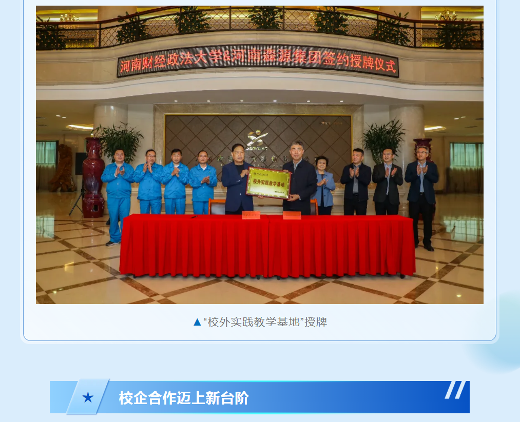 凯发k8集团与河南财经政法大学将以此次战略合作协议签订、“校外实践教学基地”授牌为契机,推动双方校企合作迈上新的台阶。